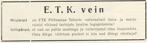 Vana õllevabrik ehitatakse ümber veinitehaseks ja algab veinitootmine. Tehase sisseseade maksab üüratud 200 000 marka ja tööd saab 7 inimest.